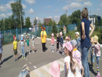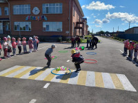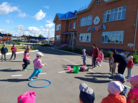 Біздің тәрбиеленушілеріміздің қозғалыс белсенділігін дамыту үшін аумақта спорт элементтері бар жылжымалы ойындарға арналған жабдықтармен жабдықталған балалар алаңы және спорт алаңы бар. Жол қозғалысы ережелері бойынша ойындар өткізуге арналған алаң бар. Мұның бәрі тәрбие-білім беру процесін іске асыру үшін қолайлы жағдай жасайды және тәрбиеленушілердің эмоционалдық және моральдық-адамгершілік саулығын қамтамасыз ете отырып, тәрбиеленушілердің дене және психикалық денсаулығын қорғауға және нығайтуға кепілдік береді (бейне материалдар қоса беріледі).